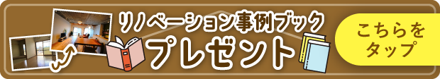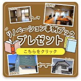 対応エリア内でリノベーションをご検討中の方に リノベーション事例ブックを プレゼントしております。無料で家創りの参考となる 事例ブックをお送りさせていただきます。 是非お気軽にお申込みください。