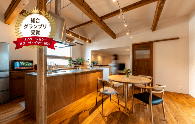 モリタ装芸の高いデザイン力と技術は、リノベーション・オブ・ザ・イヤー2022年総合グランプリを受賞したことで証明されました。リノベーションオブザイヤーとは、 リノベーション業界のプロたちが、デザイン力や暮らしやすさなどの評価項目で審査が行われている賞レースで、エントリー数約800件の頂点が総合グランプリです。 お客様と真摯に向き合い信頼できる実績と、裏付けのある確かな技術でご家族の要望を実現します。