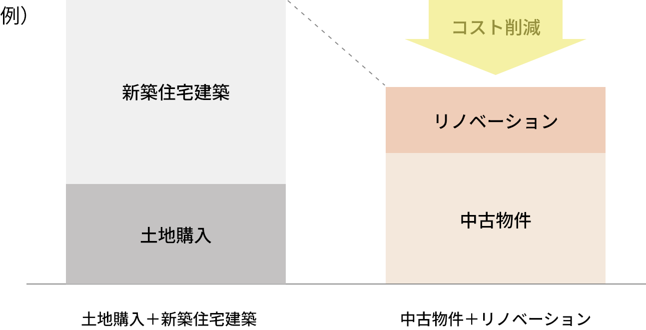中古物件を購入してリノベーションすることで、土地を購入して 新築するよりもオトクに理想の暮らしを手に入れることが出来ます。