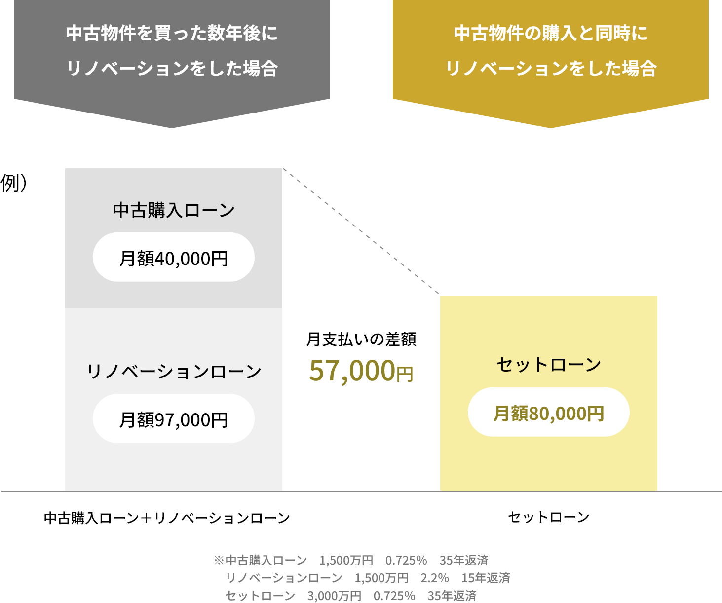 同時進行だと、「中古物件購入費用」と「リノベーション費用」をまとめた「セットローン」でさらにオトク!