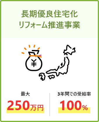 「長期優良住宅リフォーム推進事業補助金」をはじめ、 様々な補助金を活用できます。